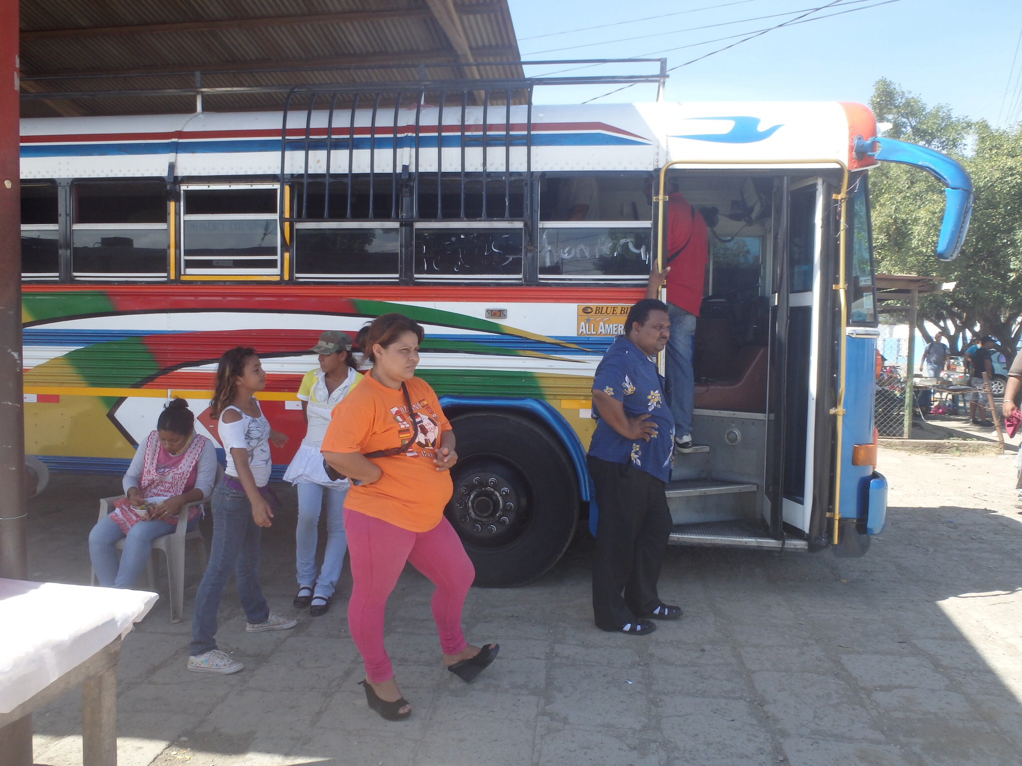 Weaving through the vendors, selling green mangoes, chances at untold fortune from an unofficial lottery, shoes and flavored water, we managed to ascertain the rattling silver bus in the second dock would get us to the border crossing in Penas Blancas. Four dollars each and it was leaving now.