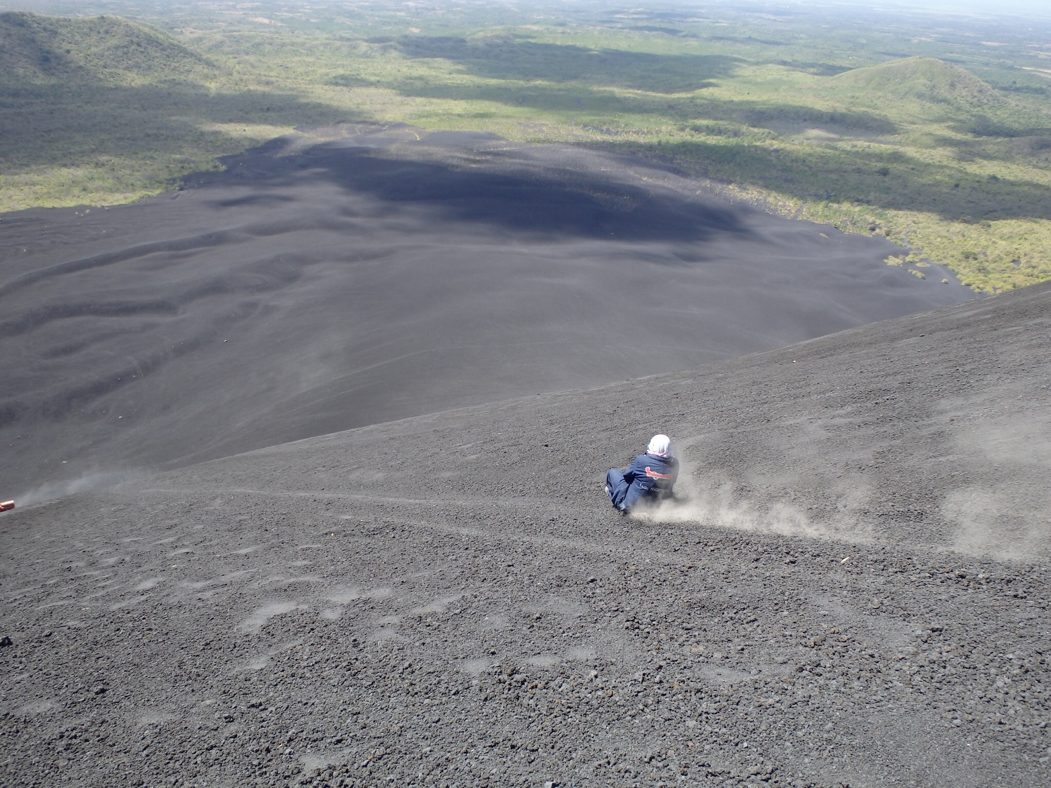 Cerro Negro – the black hill – is a young volcano. It formed in 1850 in a violent eruption that ripped through the verdant hills of the Nicaraguan countryside north and east of Leon. It erupted for more than a month before it settled as a dark hill in the green landscape. It has erupted 29 times since then, most recently in 1999. There was seismic activity recorded there last year.